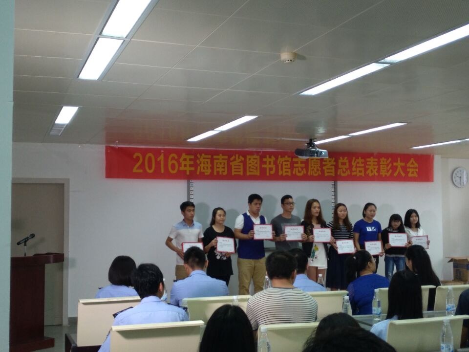 2016年海南省图书馆志愿者总结表彰大会于2017年3月18日上午在海南省图书馆二楼会议室顺利召开,威尼斯官网范亚喜等27名同学获得“海南省图书馆优秀志愿者”荣誉称号。