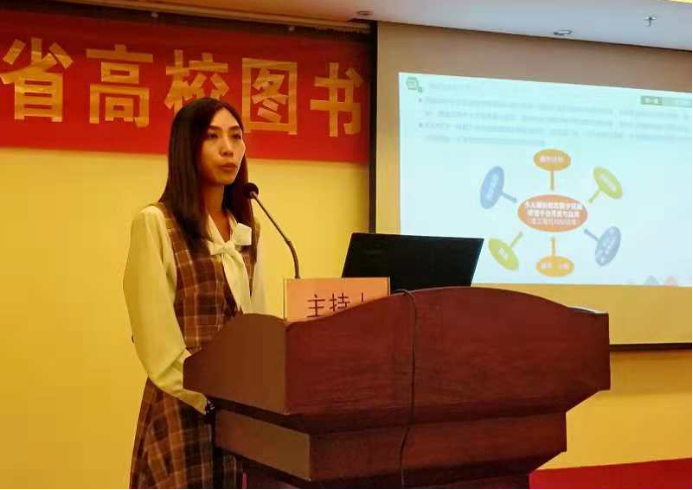 校图书馆麦笃燕老师在参赛现场汇报和答辩