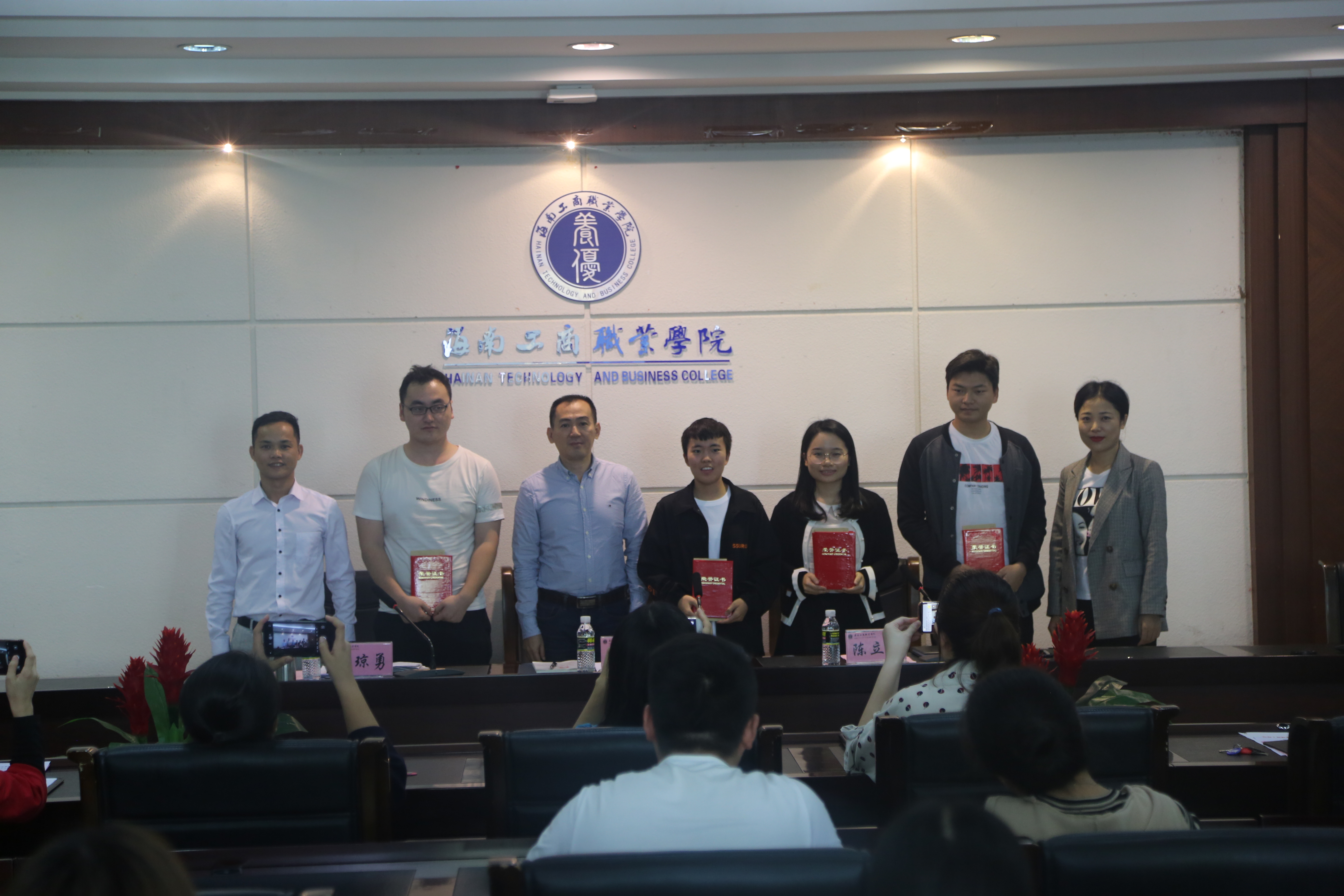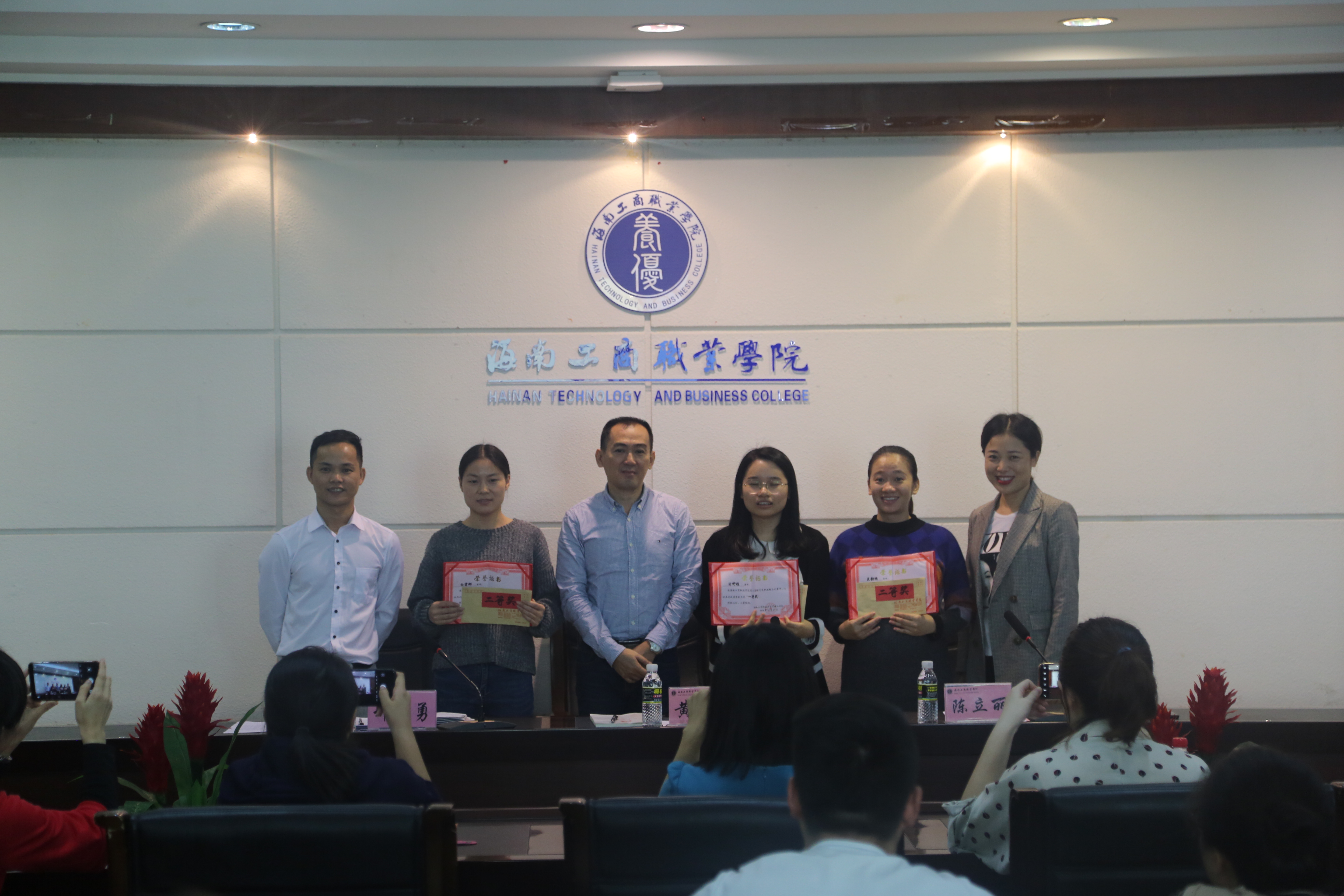 会上学生处王登辉老师宣读《37000cm威尼斯官网关于表彰第三届辅导员职业能力大赛获奖选手的决定》(海工商学〔2018〕33号)文件;随后,出席大会的领导为第三届辅导员职业能力大赛获奖选手颁奖。