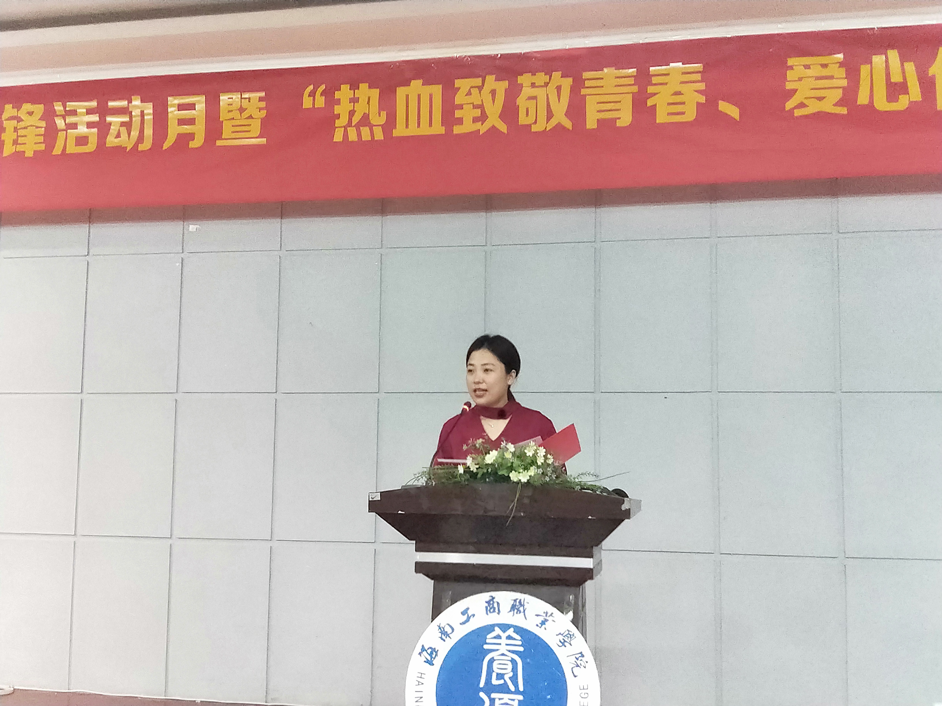 首先,陈立丽副校长为启动仪式致辞。她强调各位青年学生要从自身做起,用实际行动弘扬雷锋精神,践行雷锋精神,树立文明新风,争做新时代文明青年。同时,陈副校长对全校师生提出三点希望:一是希望全校师生找准找准定位,加强大局意识;二是希望全体学生争做青年表率,展现文明形象;三是希望全校青年学生扎实开展各项志愿服务活动,以行动践行雷锋精神。