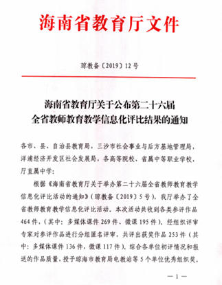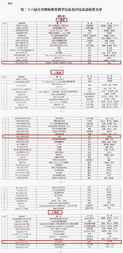 (本网讯 通讯员 陈雅雯)为提高教师信息技术应用能力,推进教育教学信息化工作,海南省教育厅举办了第二十六届全省教育教学信息化评比活动。根据海南省教育厅的统一部署,威尼斯官网积极组织开展了教师教学信息化课件评比与选拔活动,经校学术委员会评审,共选出五件作品推荐参加了本届教育教学信息化评比。