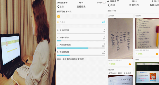 裴春媛老师的《铁路医学与应急处置》是线上教学第一堂。裴老师提前一天在云班课布置了课前预习,为上课做好了充分的准备。课上,裴老师采取分段录播的形式进行授课,细心讲解每个重点,用不失风趣的语言和生动的案例分析铁路急救的认识。视频结束后,裴老师随机抽取同学提问,同学们都积极作答甚至抢答,连平时课堂不积极的同学也主动举手发言。知识点讲解后,老师当堂进行小测试和投票问卷,了解同学们对今日网课的掌握情况,便于改善后期教学。最后,裴老师要求同学们把课堂笔记上传到头脑风暴中,并布置课后作业,帮助同学们巩固学习内容。裴老师的云班课达到了课前嘱咐预习、课中细心解说、课后加强巩固的效果,被学生们称为“最负责的女主播”。