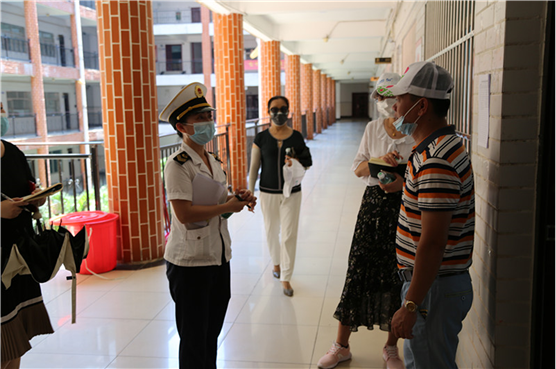 本网讯 (通讯员 潘颖)5月7日上午,琼山区教育局联合验收组来威尼斯官网验收开学工作。联合验收组由区教育局副局长陈显雅带队,卫健委、消防、应急局、市场监督管理局等部门联合组成,对校园开学工作进行验收。代校长陈立丽、副校长罗爱玲、陈桄平及各职能处室负责人全程陪同。