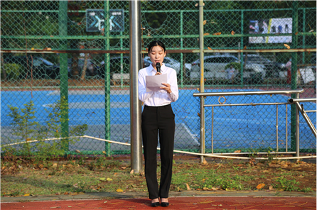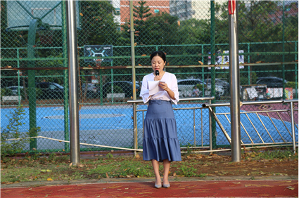 庄严的升国旗仪式后,代校长陈立丽作国旗下的讲话。讲话中,她向疫情期间奋战一线的各行业的工作人员表达无限感恩;向“养优”校园中,为维护平安校园和保障学生线上复课的教职员工表示深深感谢。最后,她分享内心感想,希望“养优”学子们要坚定“四个自信”,将爱国之情、强国之志、报国之行融入中国特色社会主义事业、建设社会主义现代化强国、实现中华民族伟大复兴的奋斗中去。同时,希望同学们能珍惜所处的伟大时代,不忘初心,练就坚韧不拔的意志和卓绝过人的技能,为建设海南自由贸易港贡献力量。