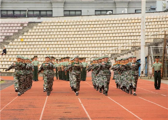 庄严的升旗仪式后,军训团二营女兵方阵代表全体参训学生展示军训成果,并与教官代表方阵进行大比拼,以特殊的方式为军训画上圆满句号。