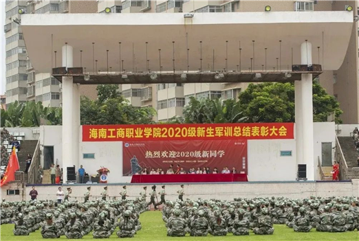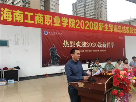 大家早上好!庚子季秋,天气初肃。我们在经历过今年不平凡的上半年之后,2020级新同学终于如期开学。经过二周的艰苦训练,在教官和同学们的共同努力下,大家克服风雨天造成的困难,圆满完成了军训的各项任务。我谨代表学校向琼山区武装部和海南武警总队机动支队的领导、教官表示衷心的感谢!向刻苦训练、顽强拼搏的同学们表示亲切的慰问!向刚才受到表彰的优秀团体和个人表示热烈的祝贺!
